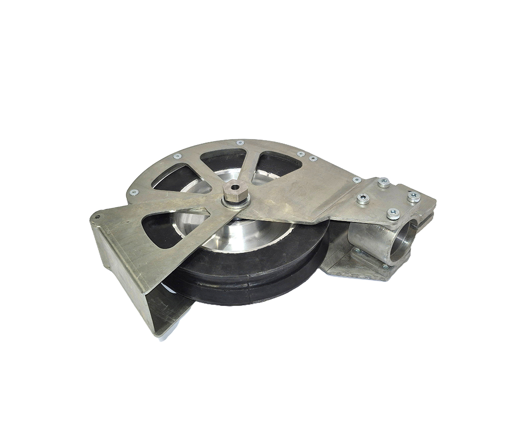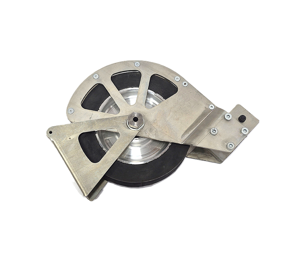 Complete 8″ pulley wheel assembly supplied with a protective guard to improve safety, stability, and operational longevity.